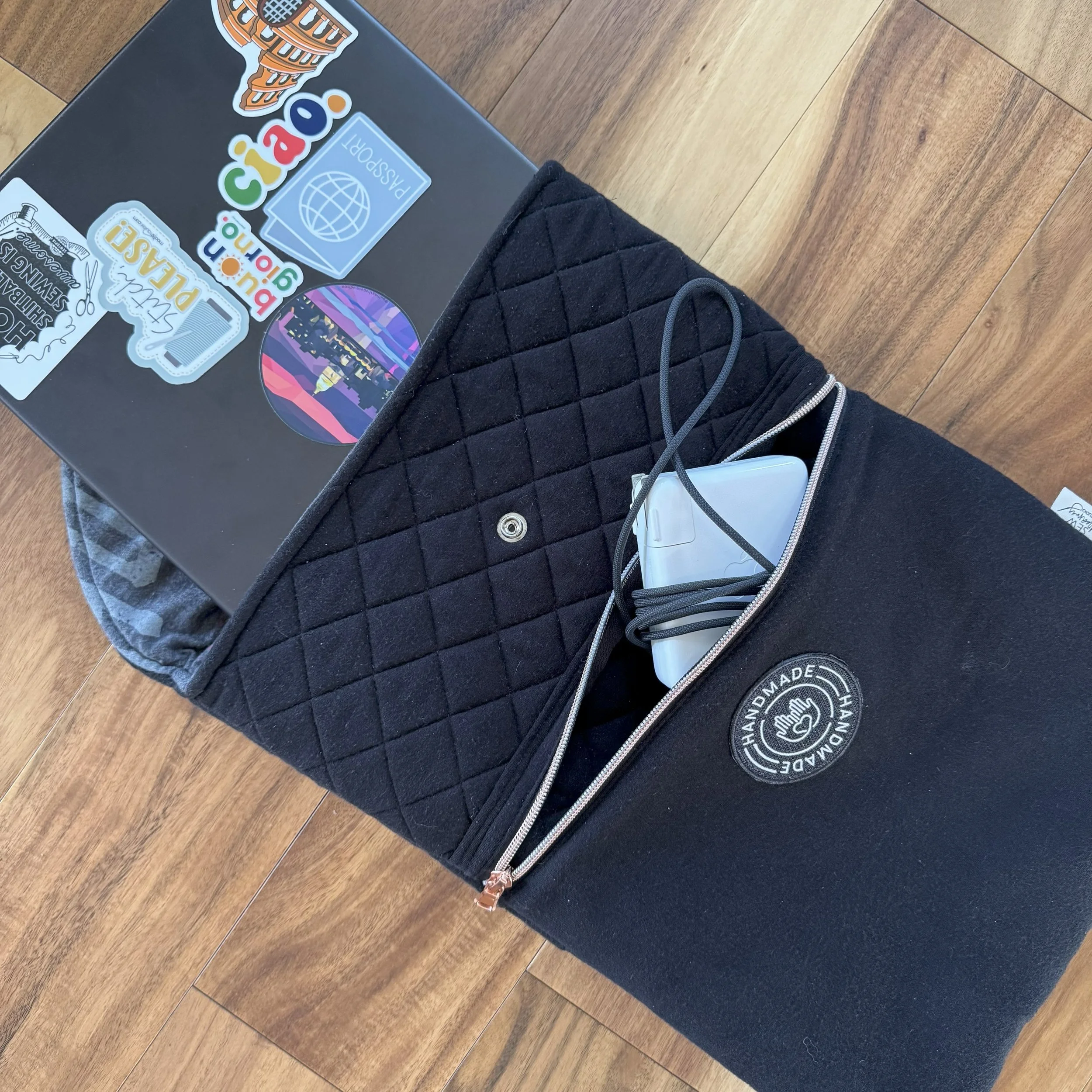 This quilted tech case is a simple, stylish way to protect your laptop, tablet, or e‑reader. Perfect for using up favorite fabrics or even repurposing a sweatshirt, it’s quick to sew, fully customizable, and a thoughtful alternative to store‑bought cases. Modern, practical, and personal - all in one easy project!